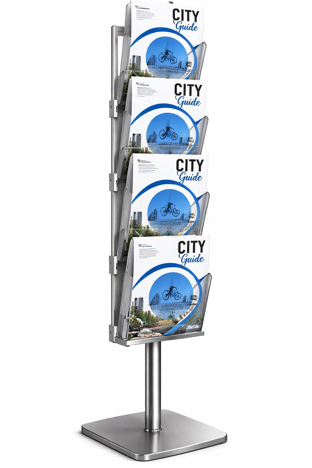 - Stylish ‘walk-around’ brochure display units. For 10 x A4 brochures