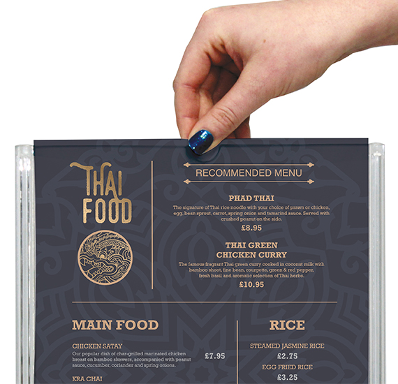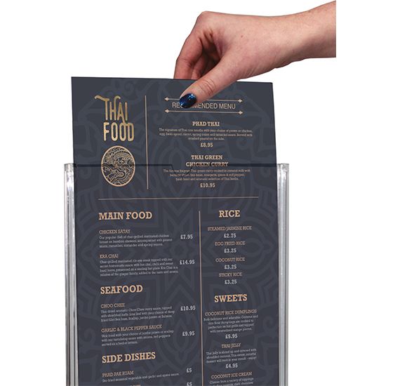 Menu displayer(Tilt ) for optimal table-top viewing.