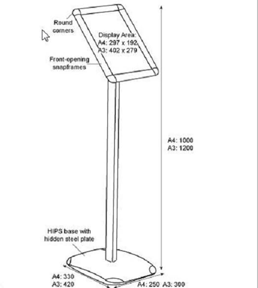 Freestanding Brochure Shelves. Includes 2 Channel Pole and 4 Shelves of 2xA4/1xA3 Brochure Holder