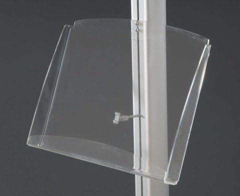 - 2 × A4 portrait/1 × A3 landscape angled shelves. Available in silver powder coated steel. For use with 2 or 4 channel Modular Pole Display.